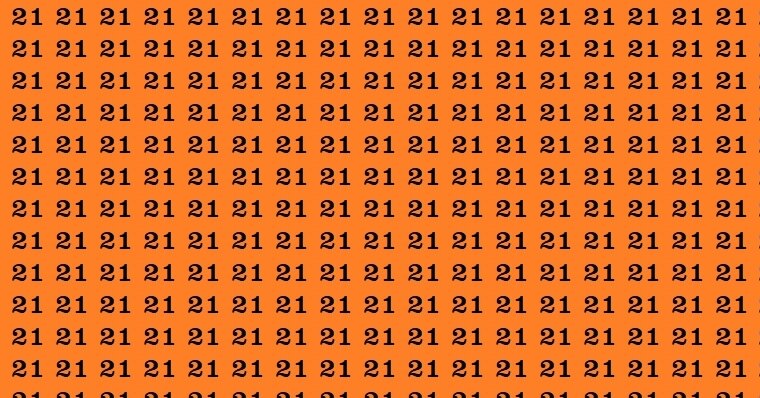 Теперь перейдем к сегодняшнему испытанию. На оранжевом фоне вы увидите множество чисел 21, сливающихся в плотный узор. Но одно число – 12 – упрятано среди них так, что его нужно выловить буквально на реакции. Засекайте 12 секунд и начинайте поиск!
