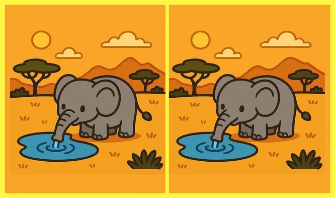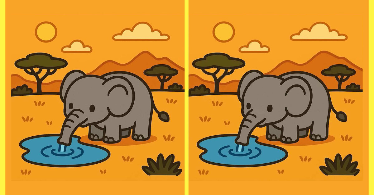 Слон на водопое: сможете отыскать три отличия между картинками?