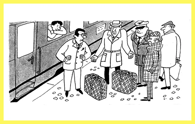 — Как вы смеете обвинять меня в воровстве! Посмотрите повнимательнее, ведь наши чемоданы совершенно одинаковы, я просто их перепутал.