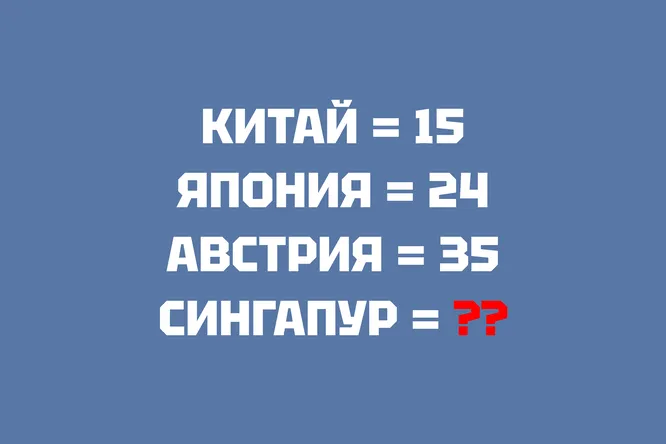 Перейдем от теории к практике? Внимание на картинку: подумайте, по какому принципу каждой стране было присвоено конкретное числовое значение, и вычислите недостающее число.