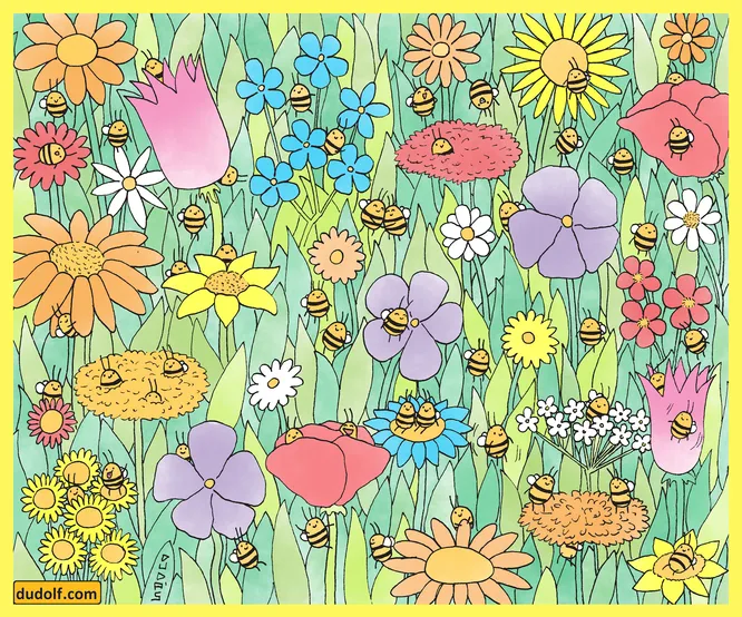 Этот рисунок был создан венгерским художником и иллюстратором Гергели Дудашем, и здесь он спрятал 52 пчелки!