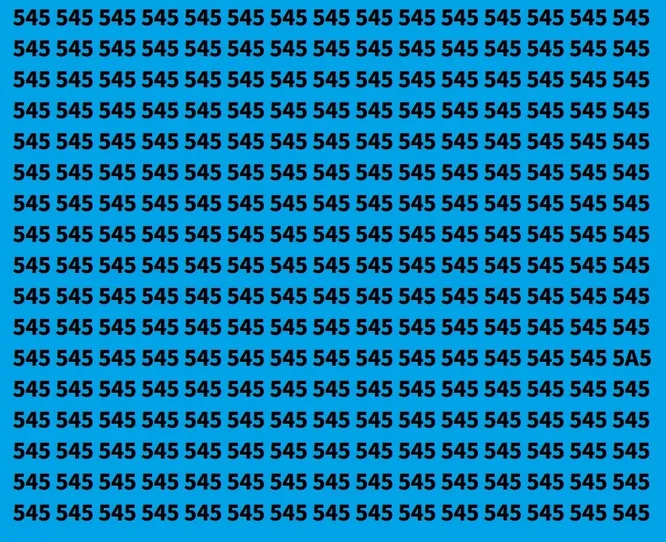 Перед вами изображение: на голубом фоне повторяются одинаковые числа 545. Но где-то среди них спряталась одна-единственная буква A. Засеките время и попробуйте найти ее как можно быстрее – пусть 9 секунд станут вашим личным испытанием.