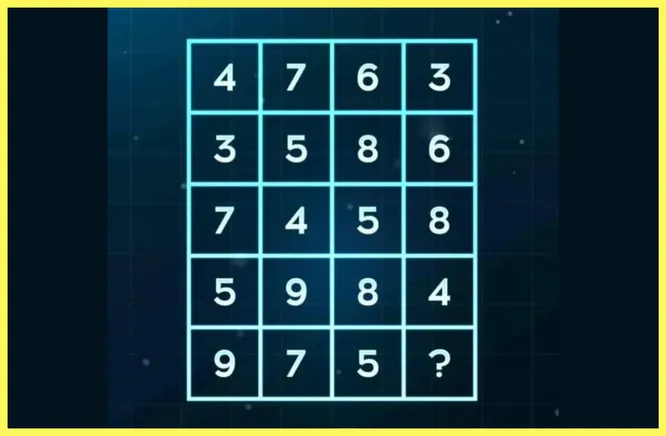 Число 7! Дело в том, что сумма чисел в каждой стране на два больше, чем в предыдущей. То есть, если в первой строке сложить 4, 7, 6 и 3, получим 20. 3+5+8+6 во второй строке = 22. 5+9+8+4 = 26.