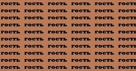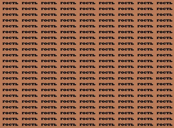 Перед вами коричневый фон, усыпанный одинаковыми словами «гость». Но среди них спряталось одно-единственное слово «кость». Ваша задача – найти его как можно быстрее.