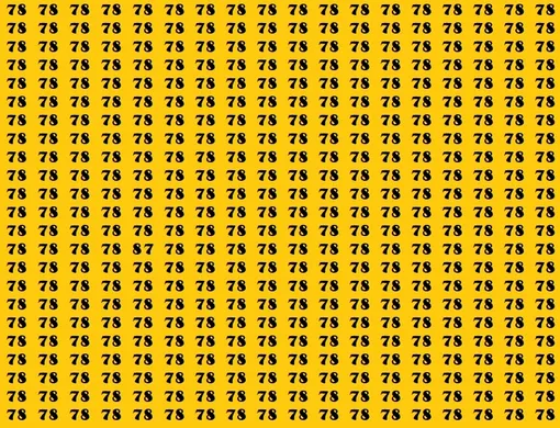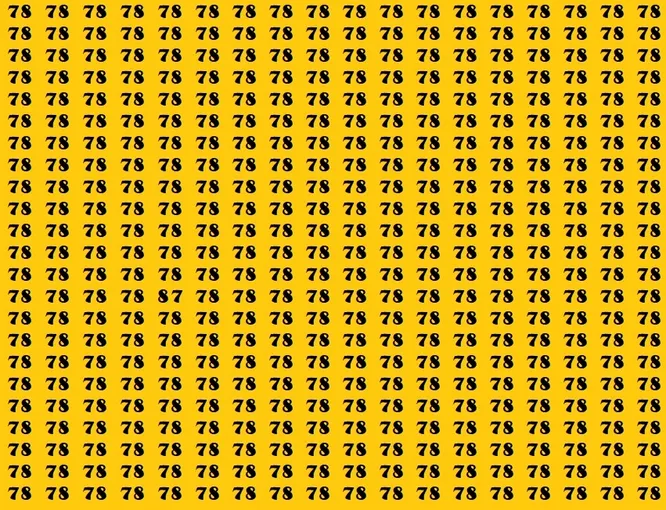 А теперь давайте перейдем к самой задаче. Перед вами золотистое поле, сплошь заполненное числами «78». Они выстроились в идеальном порядке, словно солдаты на параде. Но где-то там скрывается хитрое число «87», которое нарушило строй. Ваша миссия – найти его за 8 секунд.