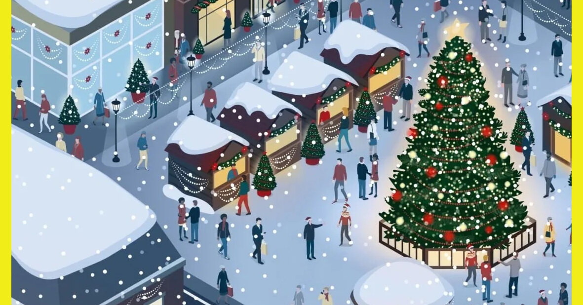 Праздник в самом разгаре: огоньки мерцают, люди спешат за подарками, музыка будто звучит прямо с картинки. Но где-то в этой рождественской суете спрятался главный гость вечера. У вас есть всего 15 секунд, чтобы его найти.