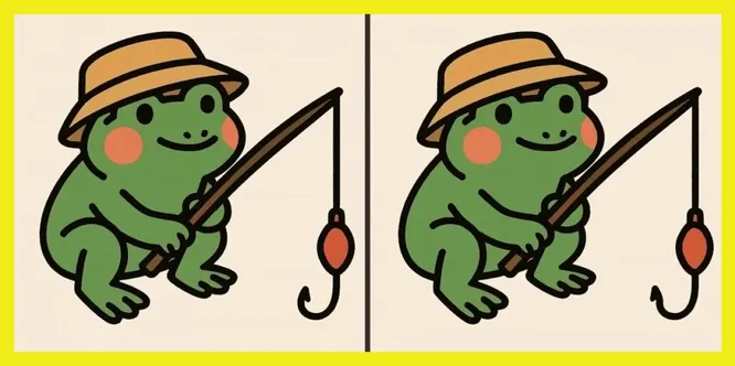 Лягушка на рыбалке: сможете найти 3 отличия между милыми картинками?