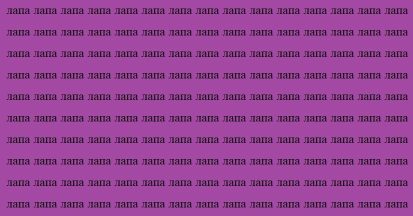 Перед вами фиолетовая картинка. На ней –множество одинаковых слов «лапа».Но среди них спряталось одно-единственное слово «папа».