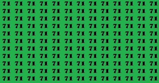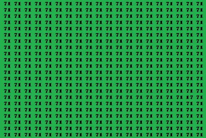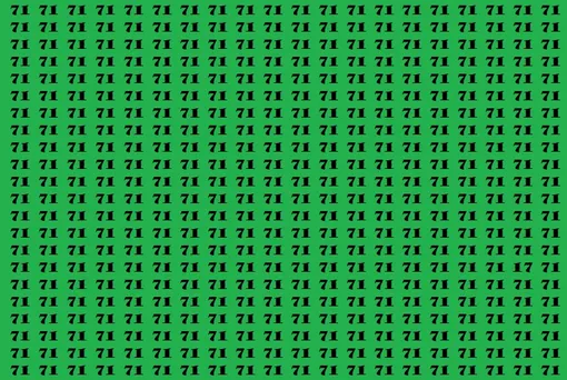 На зеленом фоне выстроено множество одинаковых чисел 71. Но среди них спряталось одно-единственное число 17. Засеките 17 секунд, сосредоточьтесь – и начинайте поиск.