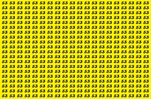 На желтом фоне размещено множество одинаковых чисел 53. Но среди них спряталось одно-единственное число 35. Ваша задача – найти его как можно быстрее. Засеките 15 секунд и начинайте поиск.