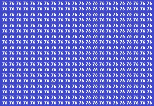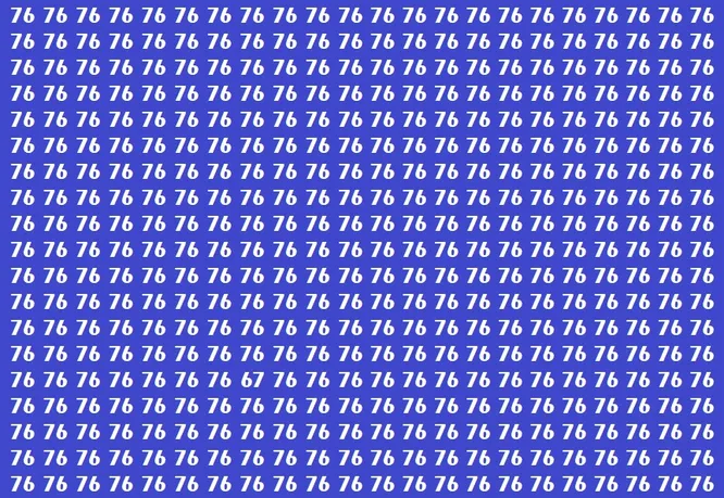 Перед вами изображение на фиолетовом фоне. Почти все пространство заполнено одинаковыми числами 76. Однако среди них скрывается одно-единственное число 67. Ваша задача – найти его всего за 20 секунд.