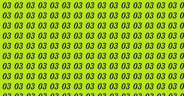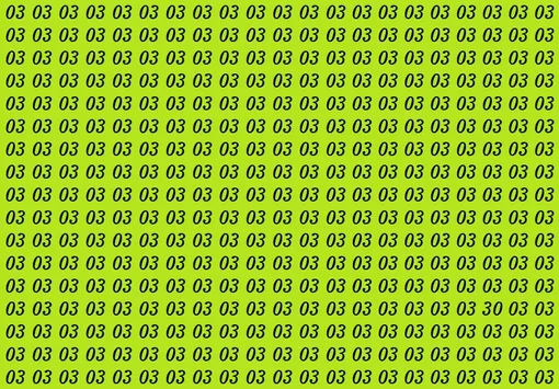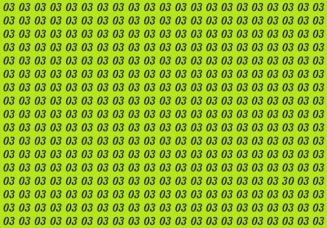 На ярко-зеленом фоне вы видите множество одинаковых чисел 03. Но среди них спряталось одно-единственное 30. Оно выглядит почти так же, поэтому легко ускользает от взгляда. Засеките 15 секунд – и начинайте поиск!