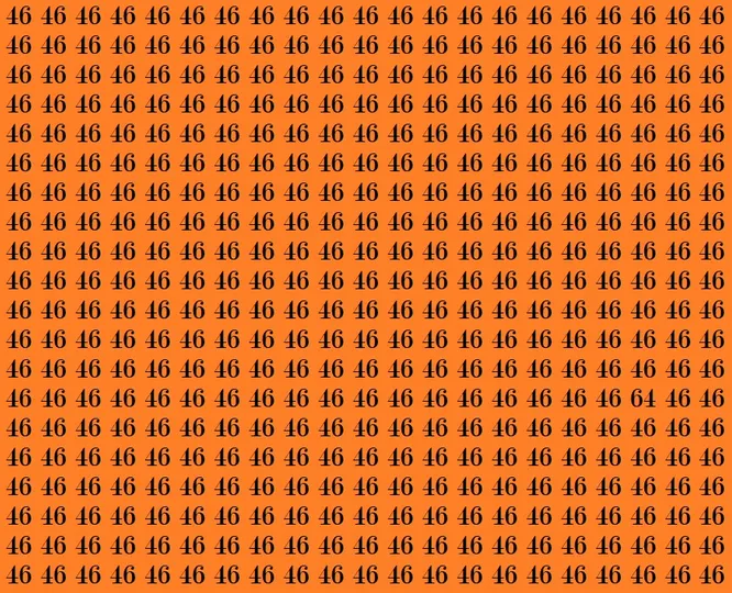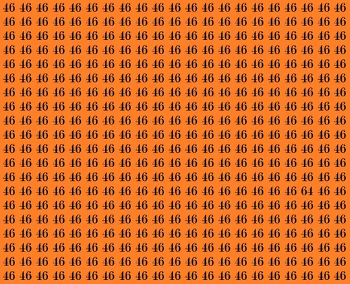 На оранжевом фоне множество одинаковых чисел 46. Они плотно заполняют все пространство и стараются слиться в единый узор. Но среди них притаилось одно-единственное число 64. Засеките 16 секунд – и начинайте поиск.