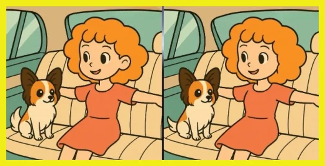Готовы к быстрой проверке внимательности? Перед вами два почти одинаковых кадра – уютная поездка, рыжеволосая женщина и милая собачка. Но не дайте атмосфере убаюкать: где-то здесь спрятались три отличия, и времени у вас совсем немного.