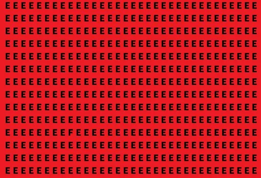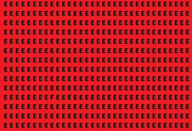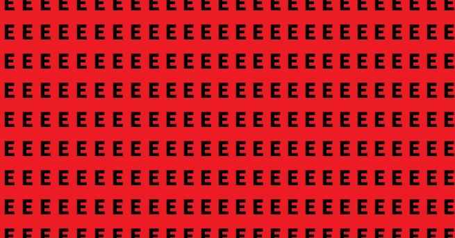 Перед вами красный фон, усыпанный одинаковыми буквами E. Но среди них есть одна буква F. Засеките 12 секунд – и начинайте поиск. Она здесь, просто не бросается в глаза.