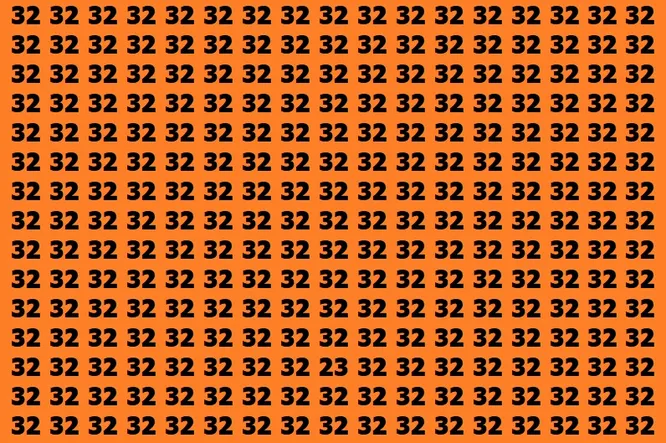 А теперь к заданию. Перед вами оранжевый фон, заполненный одинаковыми числами 32. Но среди них спряталось одно-единственное число 23. Да, те же цифры – но в другом порядке.