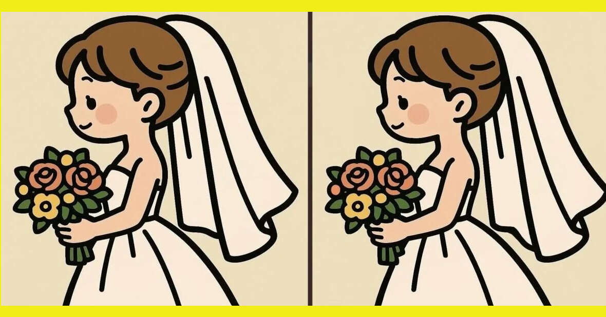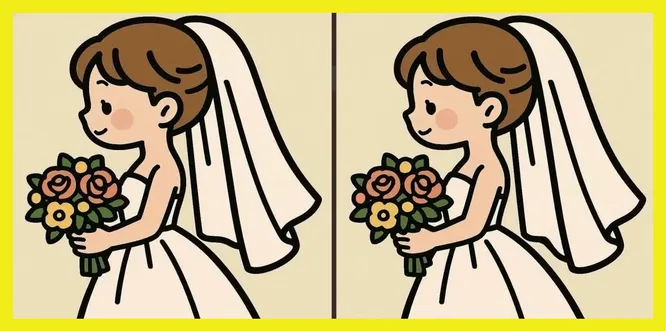 Перед вами два почти одинаковых рисунка: милая невеста в свадебном платье держит букет цветов. На первый взгляд сцены совпадают полностью – поза, наряд, настроение. Но три детали все же изменились.