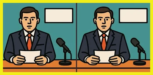 Перед вами два почти одинаковых рисунка. На них изображен ведущий новостей – в деловом костюме, с красным галстуком, он сидит перед микрофоном и держит в руках лист бумаги. Все выглядит солидно и спокойно... но это только на первый взгляд.
