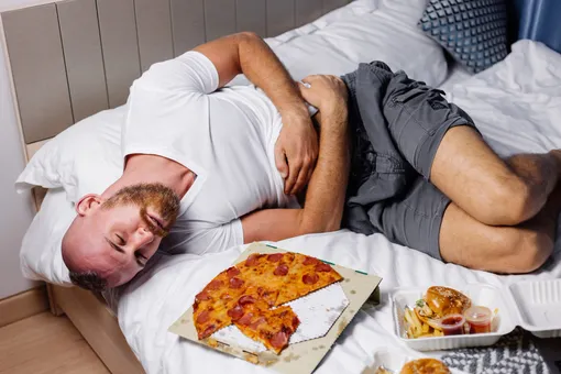 Если есть слишком быстро, переедать или выбирать тяжелую для переваривания пищу, больше углеводов доходит до толстого кишечника и подвергается ферментации. А если бактерии начинают размножаться там, где им не место (например, при синдроме избыточного бактериального роста в тонкой кишке), газ образуется раньше обычного, и вздутие ощущается сильнее.