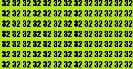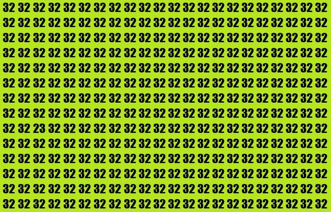 На светло-зеленом фоне изображено множество одинаковых чисел 32. Но среди них скрывается одно-единственное число 23.
