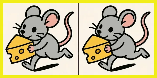 Мышка украла сыр: сможете найти 3 отличия между рисунками?