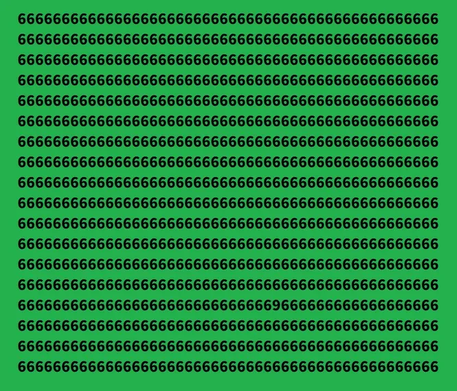 Перед вами зеленый фон, усыпанный одинаковыми цифрами 6. Но среди них спряталась одна-единственная цифра 9.