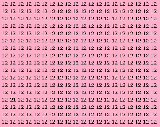 Перед вами розовая картинка, заполненная множеством одинаковых чисел 12. Все выглядит однообразно, но это иллюзия порядка. Среди этих чисел спряталось одно единственное 21.
