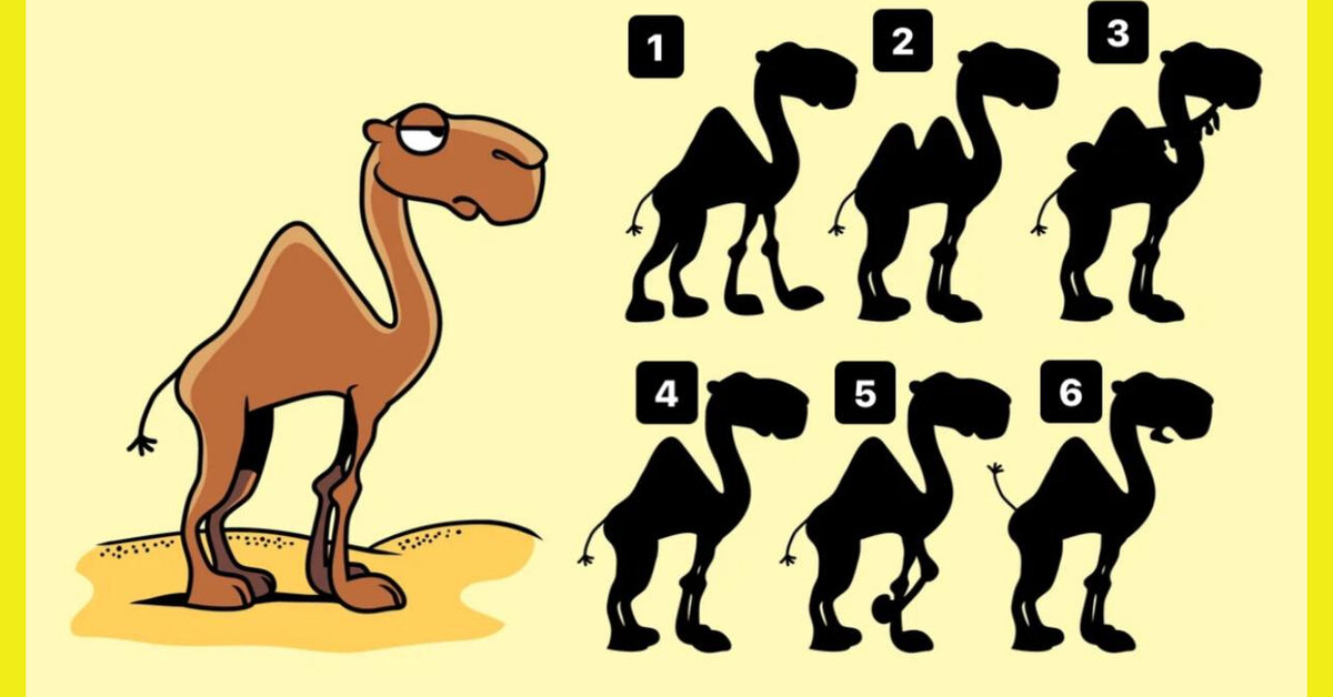 На картинке изображен мультяшный верблюд, а рядом — шесть теней. Все они очень похожи, но только одна полностью повторяет силуэт верблюда без единого отличия.