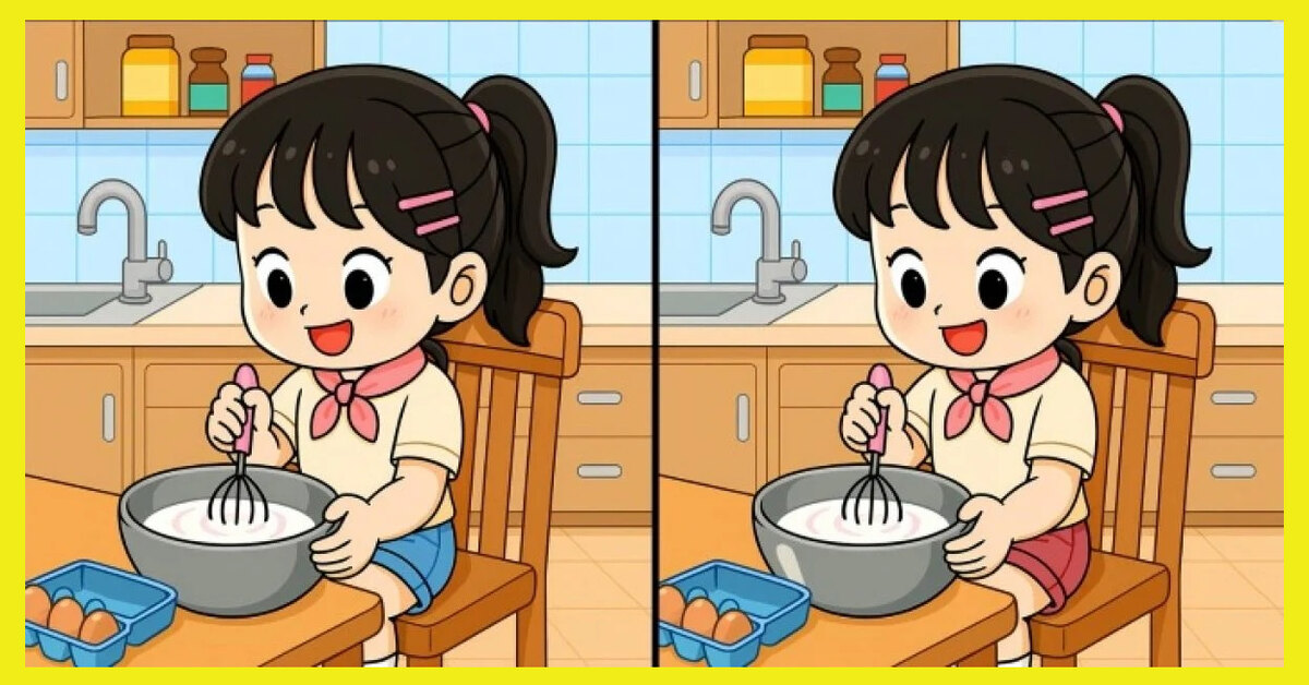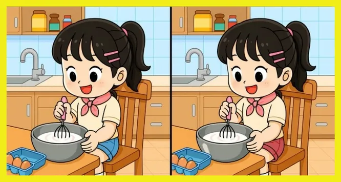 Девочка замешивает тесто: найдите 3 отличия между рисунками