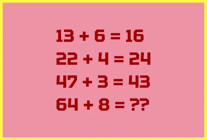 Решение до смешного простое: нужно лишь подставить к первой цифре из левого числа правое число. В первом примере к цифре 1 из числа 13 нужно подставить 6, получится ответ — 16. В последнем примере по той же логике нужно к 6 подставить 8, ответ — 68.