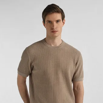С первым лотом образ уже вырисовывается. Остается добавить основу. Отлично дополнит непринужденный, но по-своему утонченный образ хлопковый джемпер с коротким рукавом от Marco di Radi — та самая универсальная база, которая работает и соло, и в многослойных образах. Аккуратный крой, полностью полугребенной хлопок и О-вырез: можно сочетать с брюками и пиджаком, а можно — с денимом и кедами.