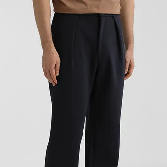 Для праздничного образа важен баланс комфорта, легкости и статуса, который нужно уметь подчеркнуть. Причем не важно, где вы окажетесь — в ресторане в центре города или в гостях у друзей. В качестве низа выбираем брюки из гладкого джерси, которые выглядят расслабленно и в то же время собранно, но не превращают в офисного клерка.