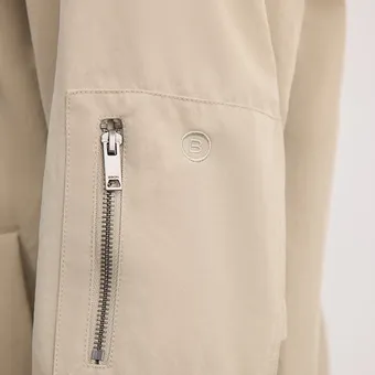 Плотный полиэстер с фирменной водоотталкивающей пропиткой PD/WR не боится дождя и ветра, а подкладка из полиамида без утеплителя делает модель почти невесомой. Пять карманов — хватит для всех мелочей. Два боковых на молнии, накладной на рукаве и два внутренних (на липучке и на молнии) — туда можно убрать смартфон или документы.