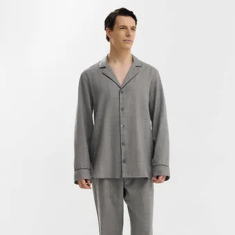 В настроение уютного и расслабленного вечера поможет погрузиться свободная пижама с добавлением шерсти из коллекции Cozy Flannel от швейцарского бренда белья и домашней одежды Zimmerli.