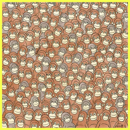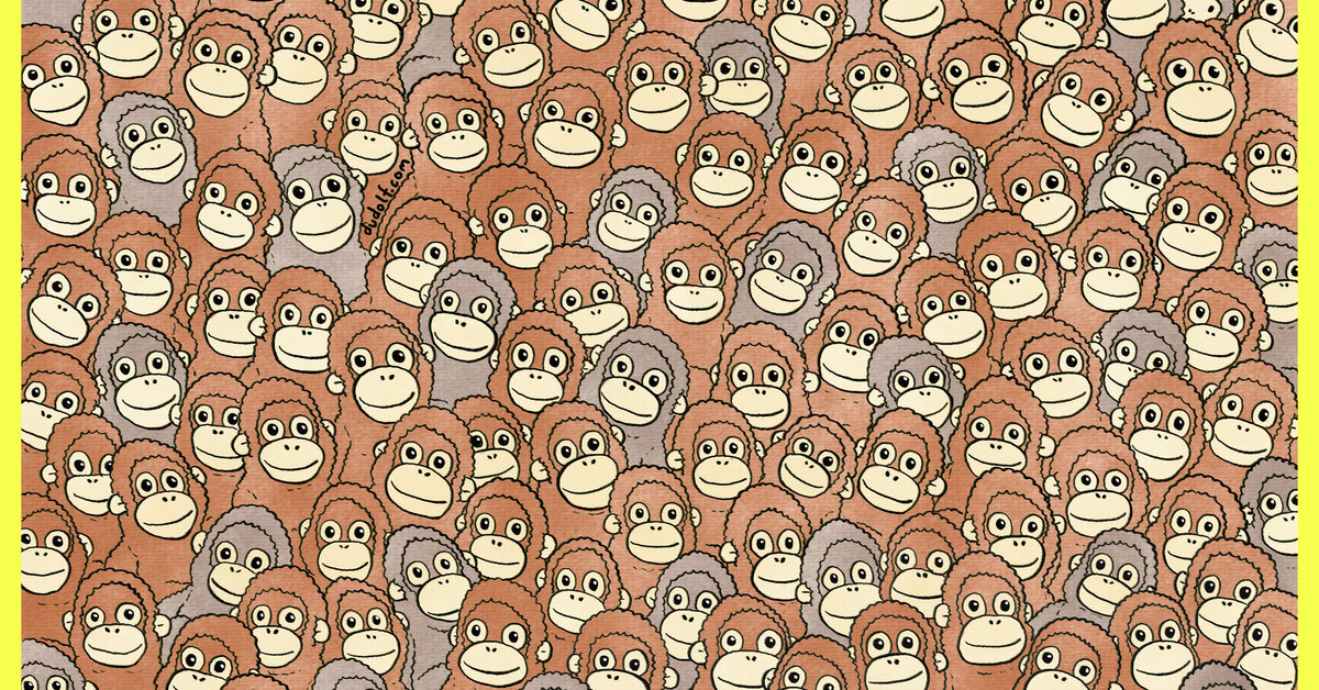 На основе этой истории Гергели Дудас разработал визуальную головоломку: сможете ли вы среди плюшевых орангутанов найти Панча?