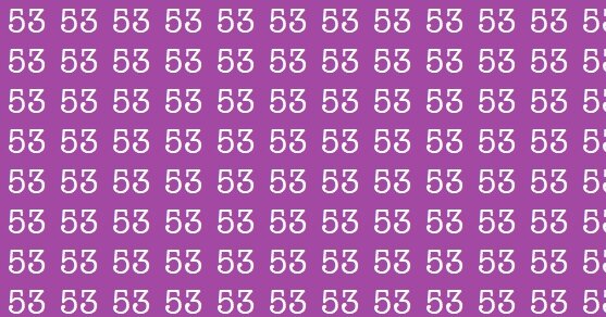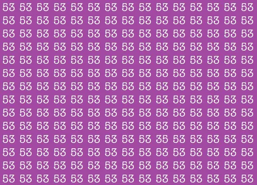 Перед вами фиолетовый фон, заполненный множеством одинаковых чисел 53. Они повторяются снова и снова, создавая ощущение полной одинаковости. Но среди них спряталось одно-единственное число – 35.