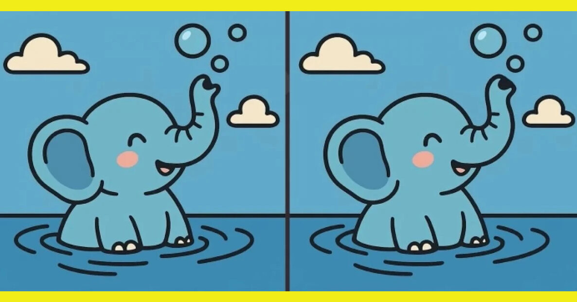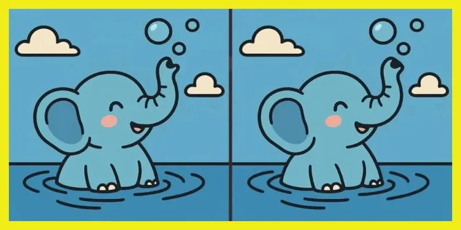 Между двумя купающимися слонятами есть отличия. Найдете их за 17 секунд?