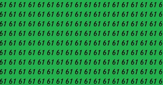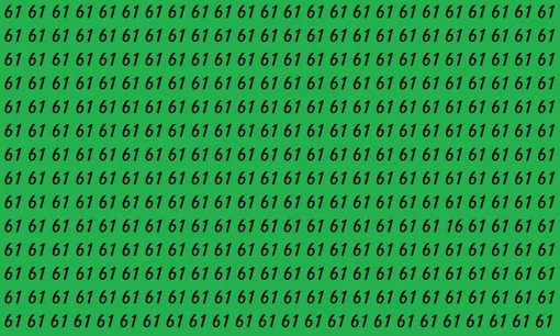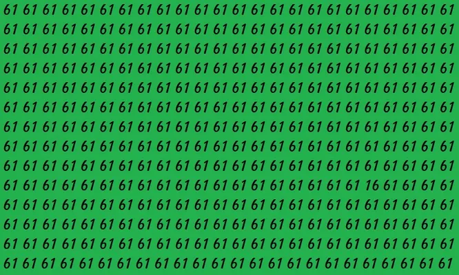 На изображении ниже – зеленый фон, заполненный одинаковыми числами 61. На первый взгляд они выглядят совершенно одинаково. Но где-то среди них скрывается одно число 16.