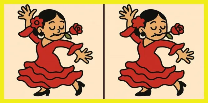 А теперь к самой задаче. На двух рисунках изображена женщина в красном платье, которая танцует. В зубах у нее – алая роза, а движения выглядят настолько выразительными, что легко представить страстное аргентинское танго.