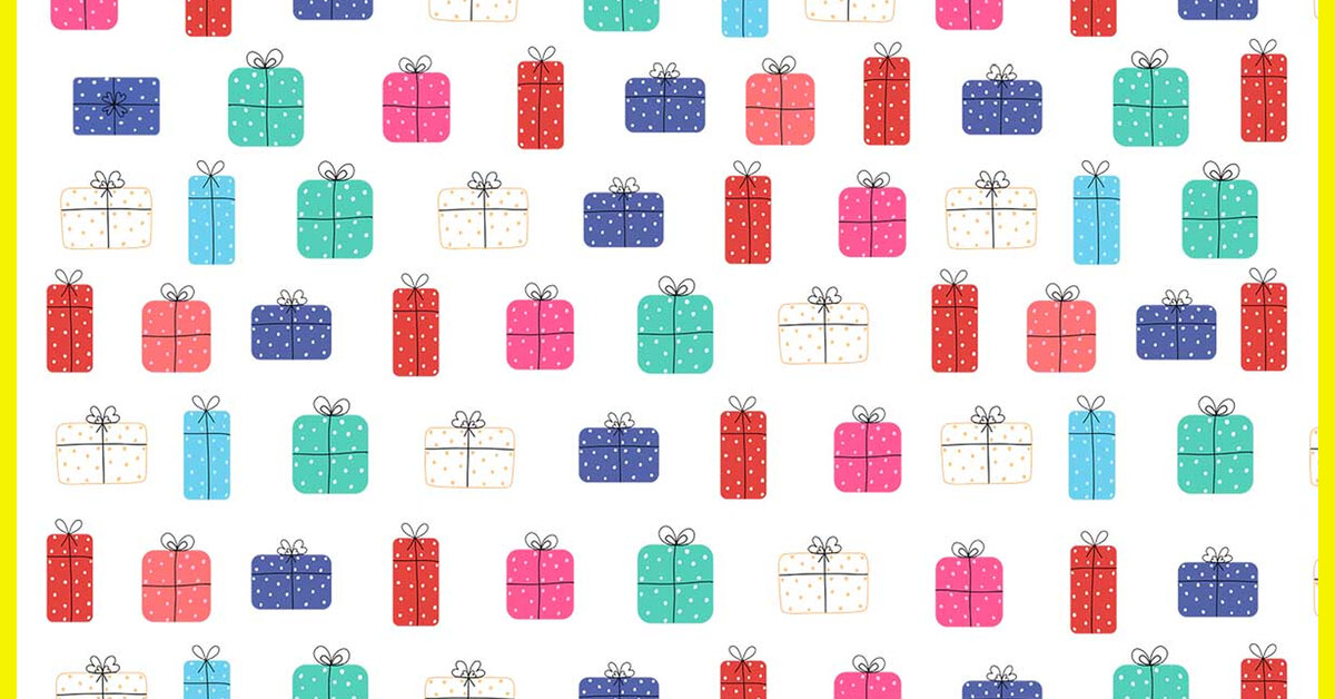 Перед вами изображение с множеством подарков, среди которых спрятан один особенный. Внимательно посмотрите на картинку и попробуйте найти подарок, который отличается от остальных.