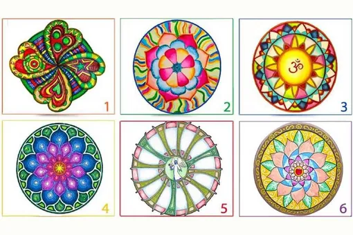 Перед вами будет изображение с шестью разными мандалами. Посмотрите на них внимательно и выберите ту, которая больше всего привлекает ваше внимание. Не спешите, но и не анализируйте слишком долго — доверьтесь своему ощущению.