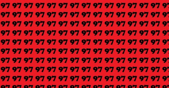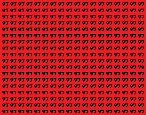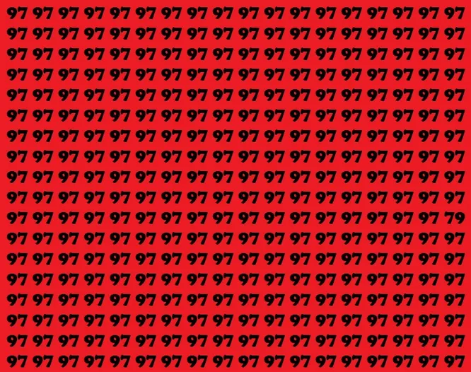 Ниже – красный фон, усыпанный одинаковыми числами 97. Они выстроились так плотно, что глаз начинает скользить мимо, не цепляясь за детали. Но среди них спряталось одно число 79 – почти близнец, но с переставленными цифрами.