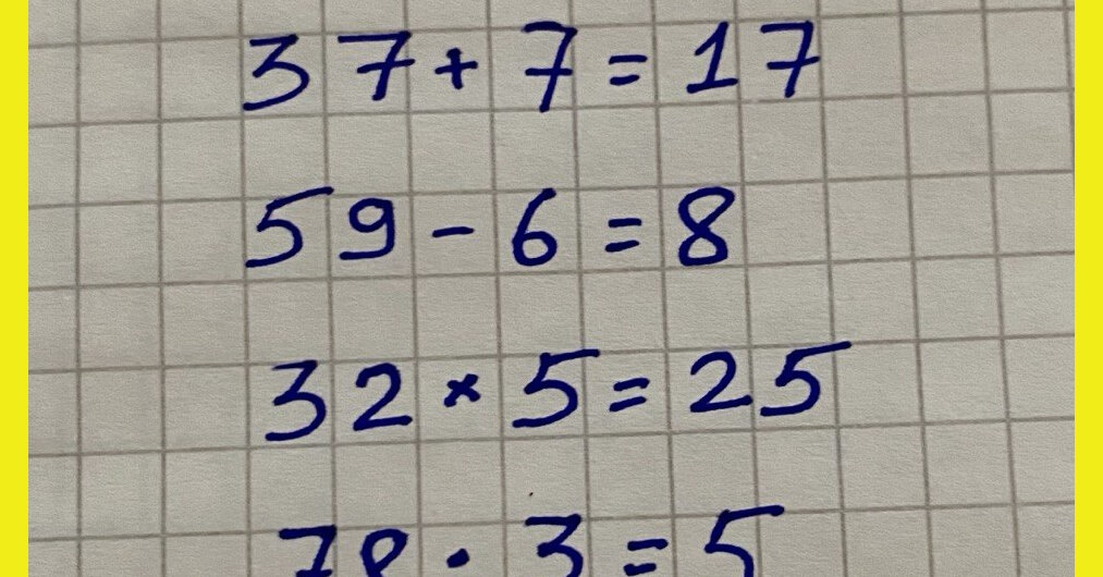 Перед вами тетрадный лист с рядами уравнений, которые будто нарушают все привычные правила. Они не складываются в стандартные формулы и не решаются по шаблону – здесь работает другая система, скрытая и неочевидная. Ваша задача – распознать эту закономерность и понять, какое число должно стоять на месте вопроса в последней строке.