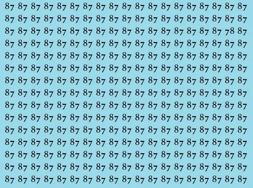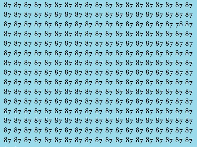 Ниже – светло-бирюзовое поле, заполненное одинаковыми числами 87. Но среди них спряталось одно число 78.