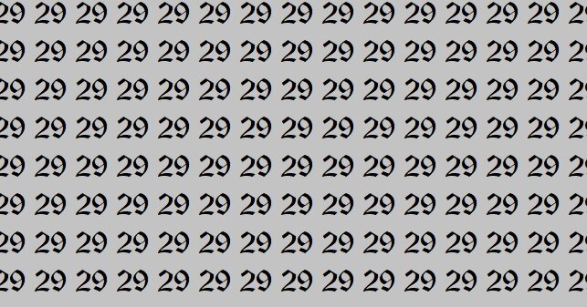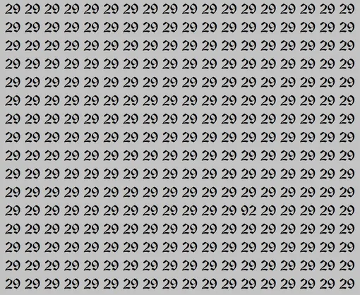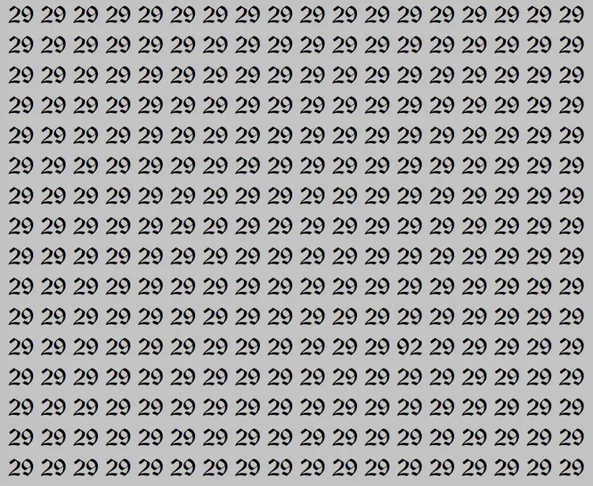 А теперь к испытанию. Перед вами светло-серое поле, заполненное одинаковыми числами 29. Но среди них спряталось одно-единственное число 92. Ваша задача – найти его всего за 15 секунд. Засеките время и начинайте поиск.