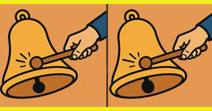 Перед вами два рисунка с колоколом, по которому ударяют палочкой. Картинки почти идентичны, но между ними спрятаны три отличия.