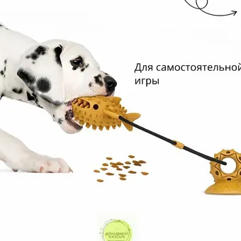 Такая резиновая игрушка крепится к полу с помощью крепкой присоски. Собака пытается потрепать ее, перетянуть, а та пружинит и создает ощущение сопротивления. Вариант заменяет игру с хозяином на перетягивание. Этот вариант подойдет для питомцев, которым часто приходится оставаться одним дома, чтобы как следует сбросить стресс, энергию и чем-то себя занять.