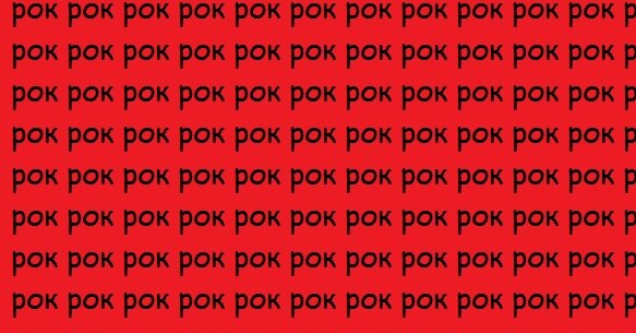 На красном фоне перед вами выстроены ряды из слова «рок». Все они выглядят одинаково, но в одном месте вместо последней буквы стоит «г». Засеките 6 секунд на таймере и начинайте искать слово «рог»!