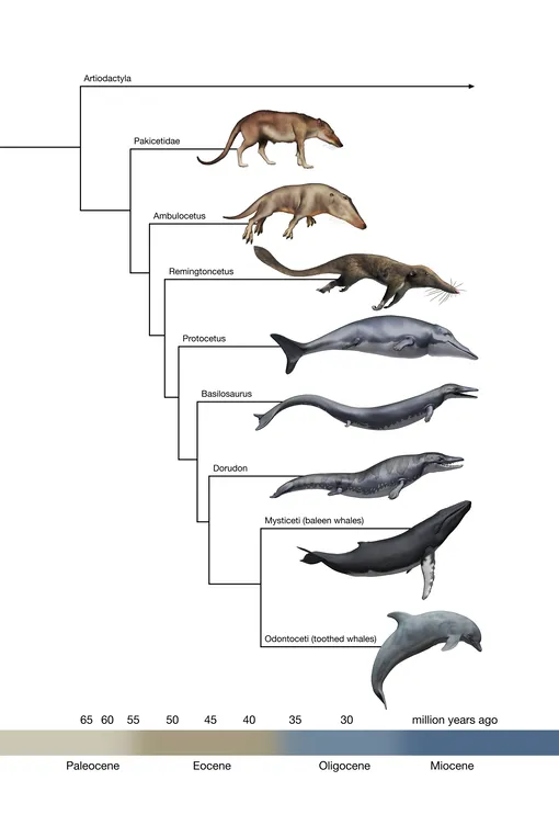 Постепенно они начали проводить все больше времени в воде, их конечности трансформировались в плавники, а задние ноги уменьшились. Да, уменьшились, а не полностью исчезли — у современных китов есть рудиментарные тазовые кости как напоминание о наземном прошлом.