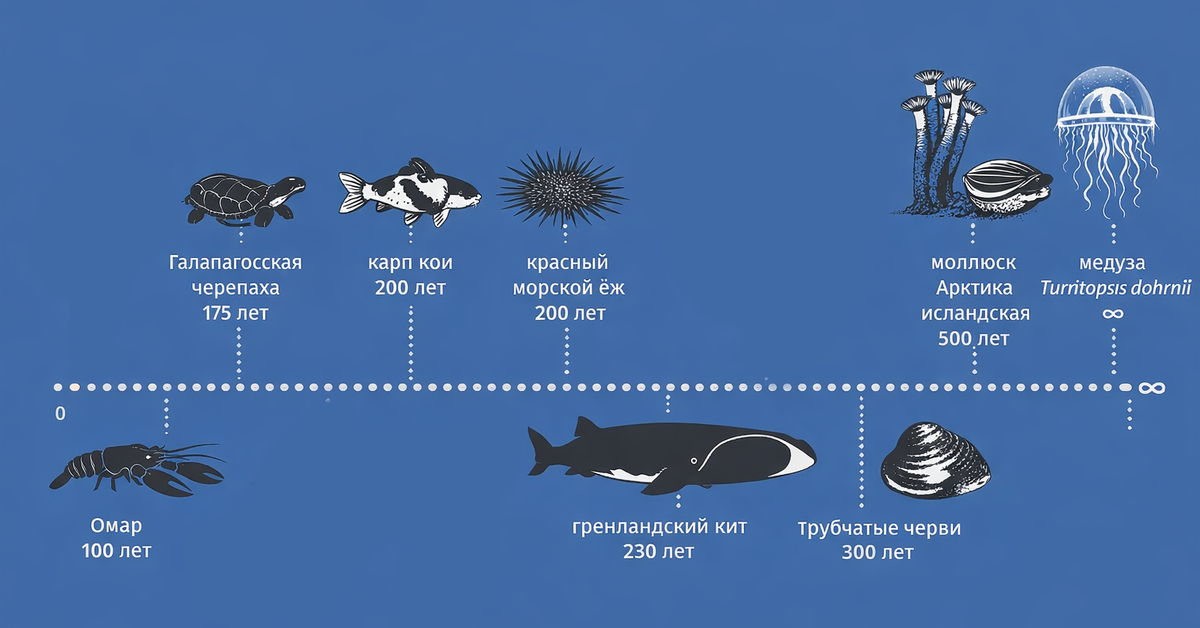 При этом умирают они все же не «от старости» в привычном смысле. Чаще всего их жизнь обрывают внешние факторы: хищники, болезни или изменения среды. То есть организм сам по себе может долго оставаться стабильным, но в реальных условиях океана дожить до максимального возраста удается далеко не всем.